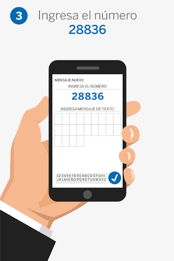 Envía al 28836 la palabra chip (espacio) número de tu tarjeta (espacio) y tu NIP.